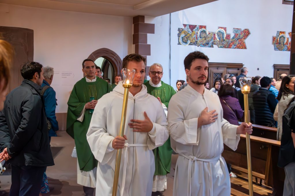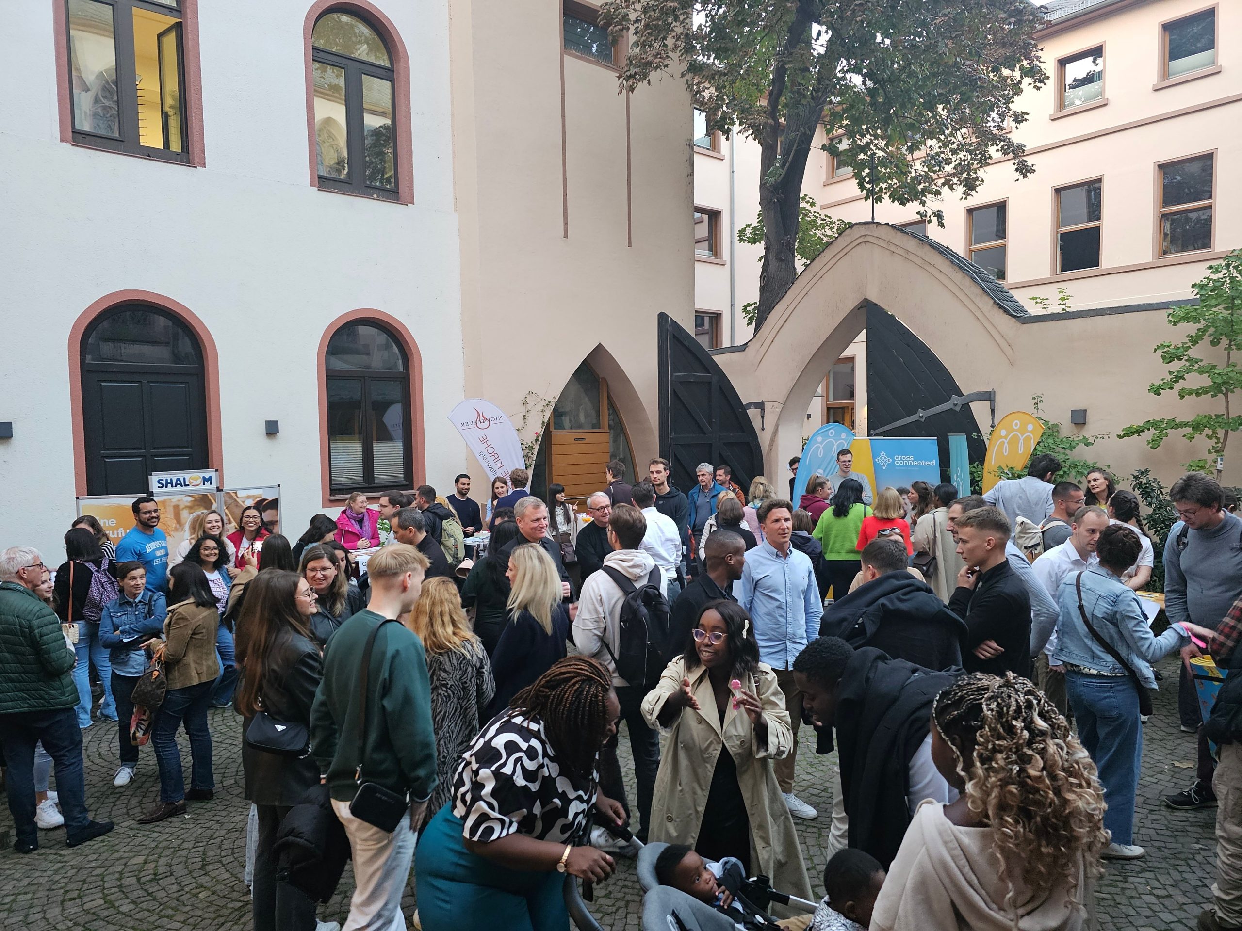 Tras la misa vino el momento de hacer red entre nosotros. Era el momento de los stands. Más de 20 grupos solicitaron tener un stand en el que podían explicar quiénes eran, su carisma, su presencia en Frankfurt y alrededores, así como la oferta espiritual. Fue realmente una ¡fiesta del Espíritu! Esos stands parecían un jardín en plena primavera, donde flores de todos los tipos y colores florecen. Este momento de intercambio ayudó a estrechar lazos entre los que ya nos conocíamos, pero también ayudó a conocer gente nueva. Fui testigo de como varios jóvenes que habían llegado ahí solos, gracias al momento de stands, encontraron una realidad eclesial donde crecer en la fe y, al día de hoy, siguen perseverando en los grupos que fueron de su interés.