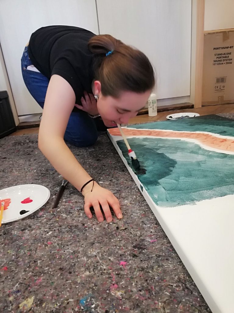 El segundo día inició con una Eucaristía, seguido de un taller de serigrafía, dirigido por el Padre Juan María Latorre, donde imprimimos logos en camisetas. A continuación se ofreció un taller donde se dio la oportunidad a los participantes de desarrollar su creatividad en grupo. El objetivo era crear un cuadro usando diferentes objetos y partes del cuerpo para pintar; el resultado fue un hermoso lienzo.