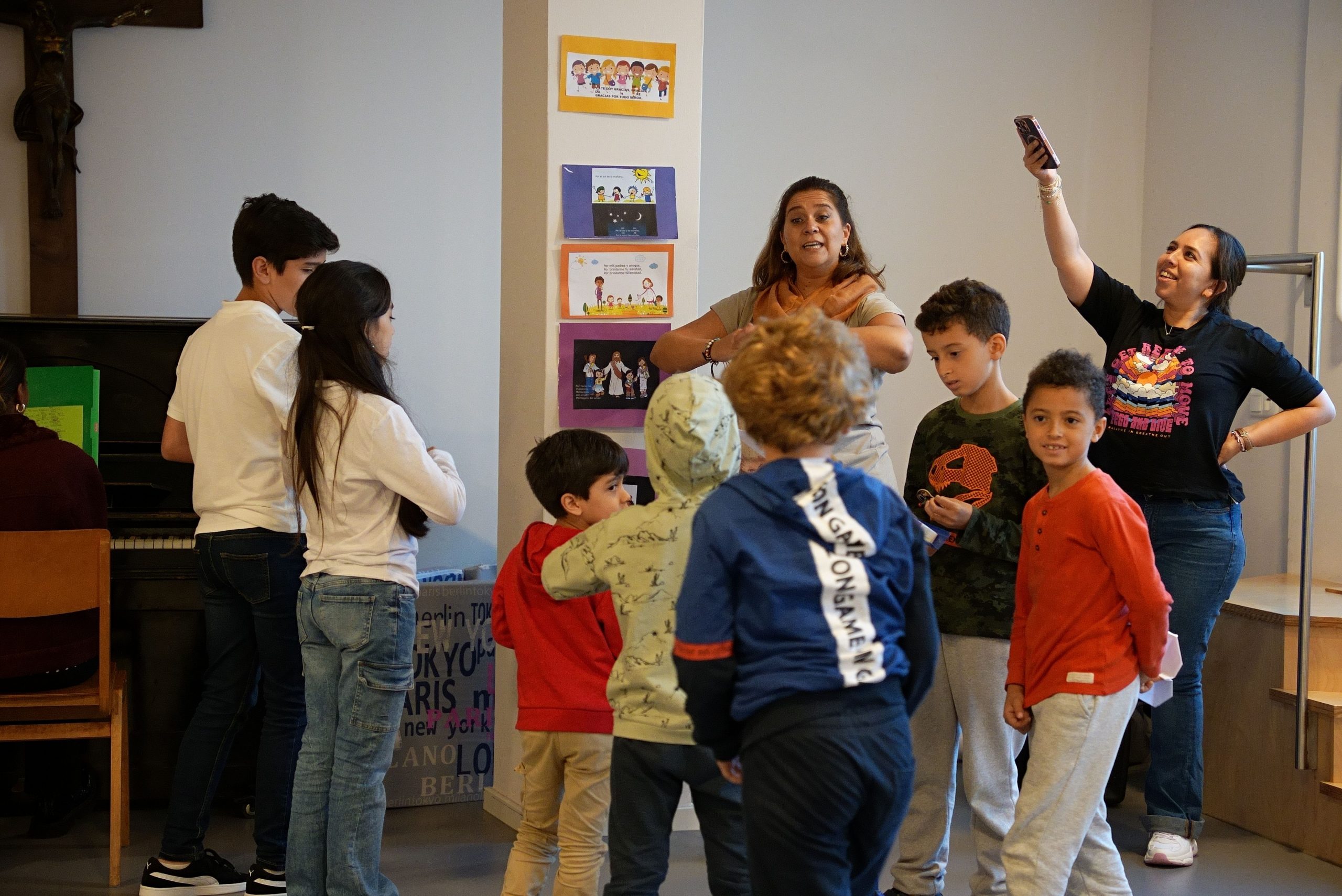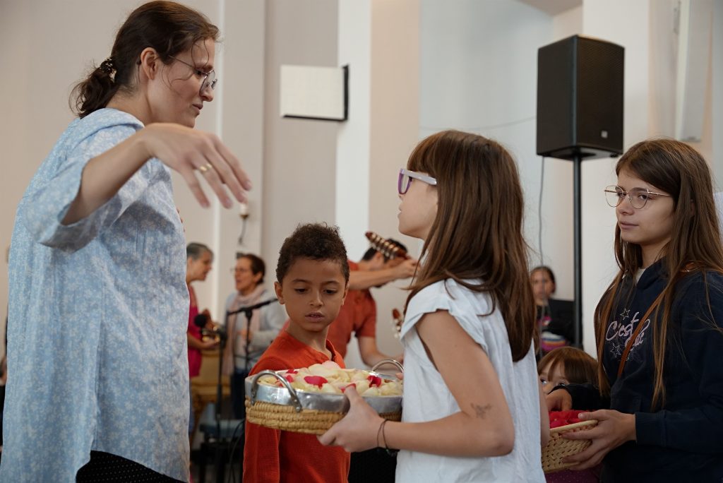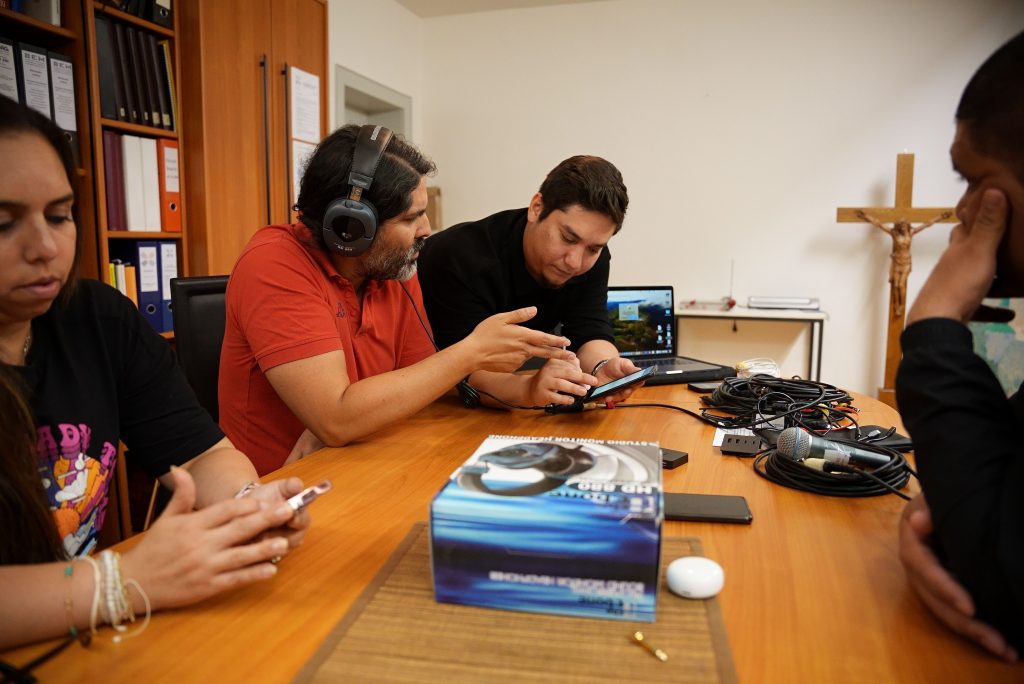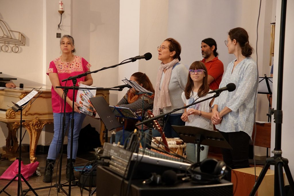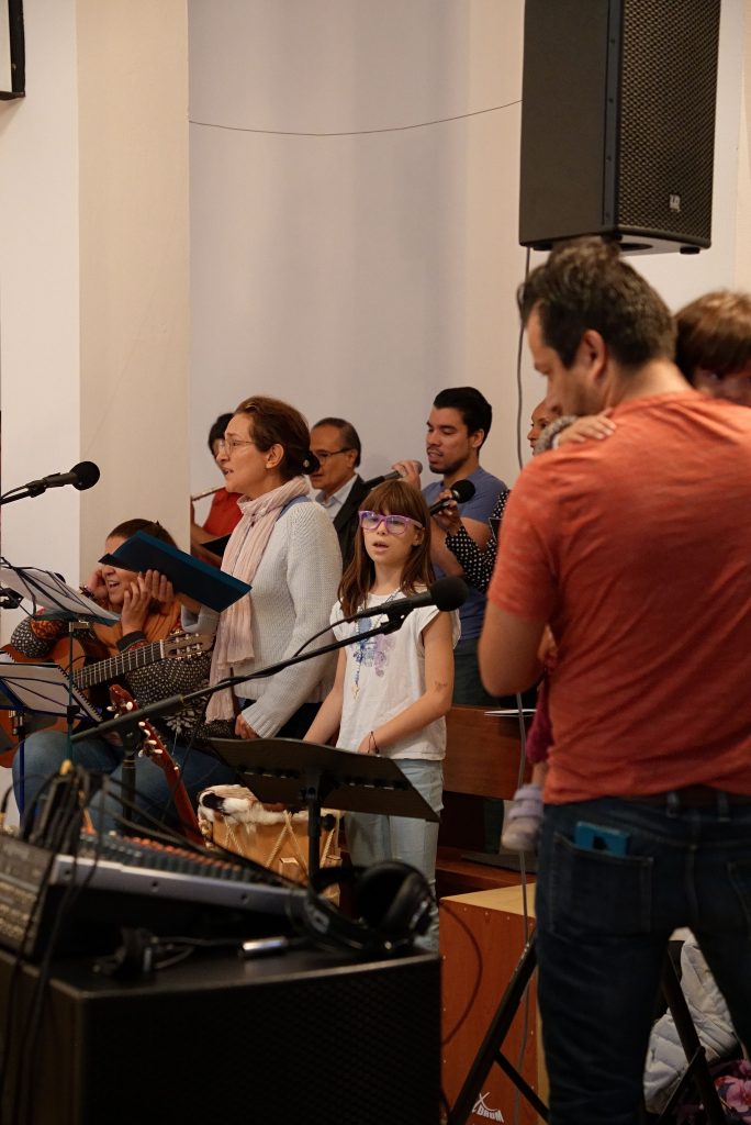 Seguido de la jornada de inclusión, se realizó un bellísimo retiro de tres días – del 13 al 15 de octubre – en torno a la música litúrgica española y latinoamericana. La oferta era para niños, jóvenes, adultos, adultos mayores, para personas con discapacidad y neuro diversas, para personas de todas las culturas. Mario Reynoso, locutor de la Deutsche Welle, músico, actor, bailarín y encargado de la vida musical de las comunidades hispanohablantes de Colonia y de Bonn inauguró este retiro con su taller sobre percusiones latinas. Después, la comunidad alemana invitó a un concierto de música contemporánea. Una pieza del programa fue el Agnus Dei de la Misa de Chiapas compuesta por Ignacio Olivarec, Dr. en teología, compositor y director de orquesta, con quien comparto el puesto de la dirección musical de nuestra comunidad hispano hablante.